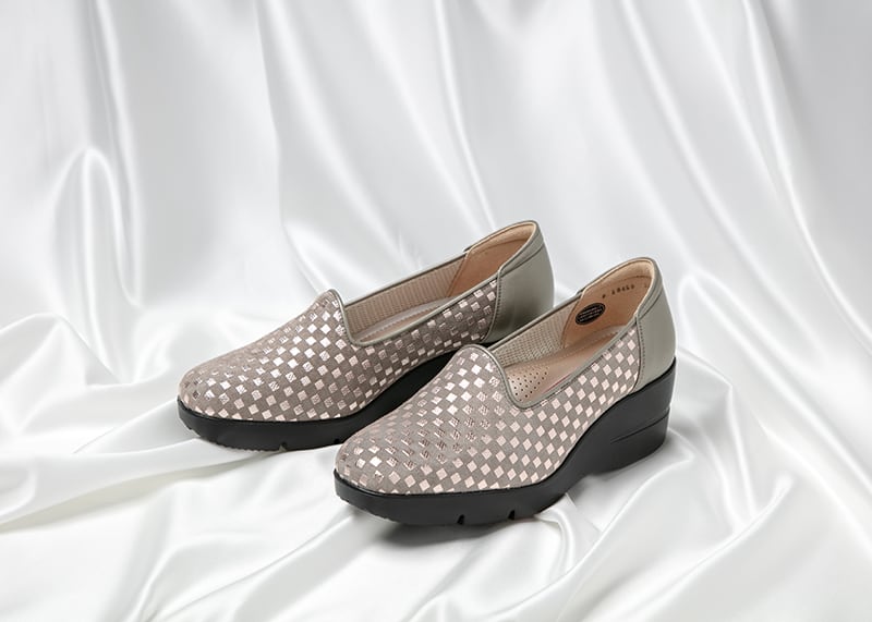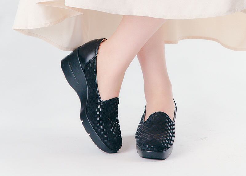 ・スタッフB(足サイズ23.5 or 24.0cm/幅広で甲の高さは普通):23.5cmを履きました。ストッキング着用で、ぴったりです。格子柄のところは光沢感がありますが、派手すぎず、どんな洋服にも合わせやすいです。柔らかい豚革なので、足馴染みが良いです。