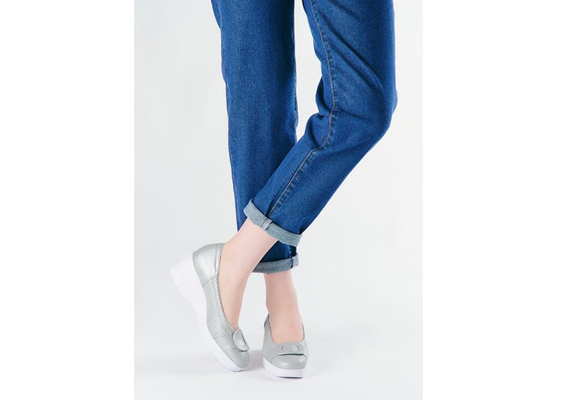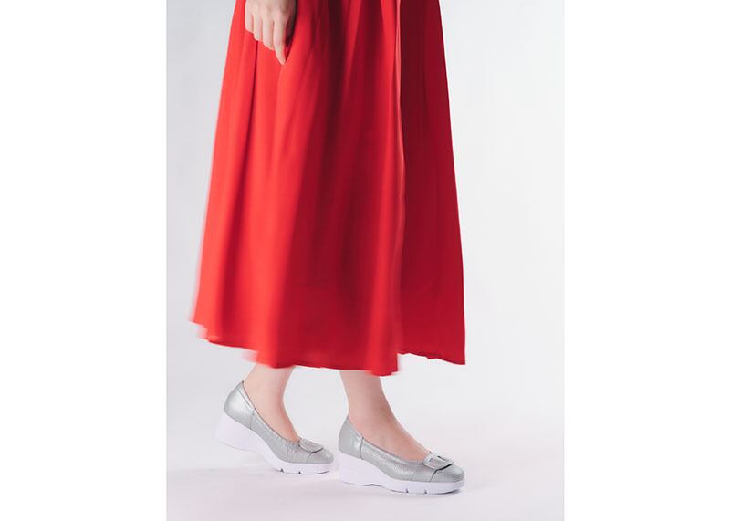 ・スタッフB(足サイズ23.5 or 24.0cm/幅広で甲の高さは普通):23.5cmを履きました。ストッキング着用で、サイズ感はぴったりです。軽くてクッション性のある厚底なので歩きやすいです。白いソールで足元が明るくなります。