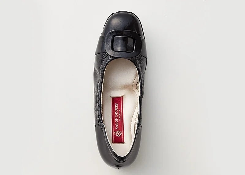 ・スタッフE(足サイズ23.0cm/足幅、甲の高さは普通):23.0cmを履きました。ストッキング着用で2ミリ厚の半中敷きを使用して丁度です。バックルのバレエシューズは珍しく、オシャレ度もUPして、カジュアルエレガンスな感じです。素足やソックスのカラーリングで楽しめます。
